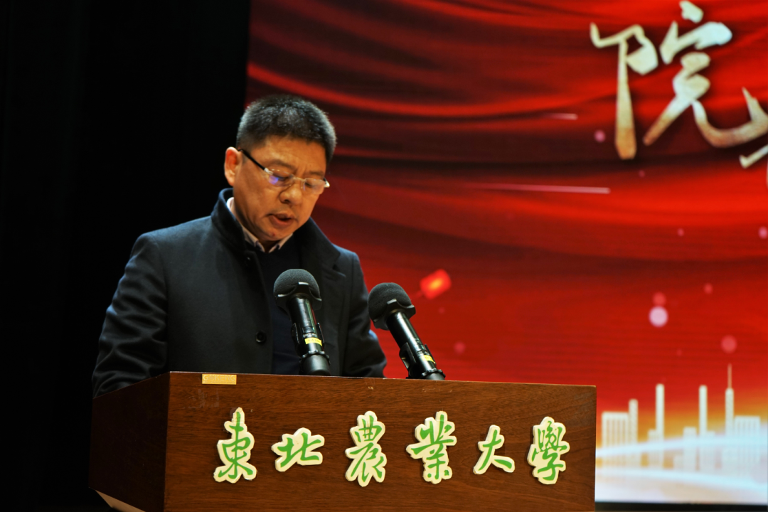 计算机科学与技术系戴百生代表全院教师发言,他以农业智能化的发展为蓝图,向全体新生提出三点建议,一是要独立思考,具备主动学习的意识;二是要珍惜时间,具有自我充实的觉悟;三是学会规划好自己的人生道路,珍惜学院提供的科研、实践平台,勇敢前行,不负青春。