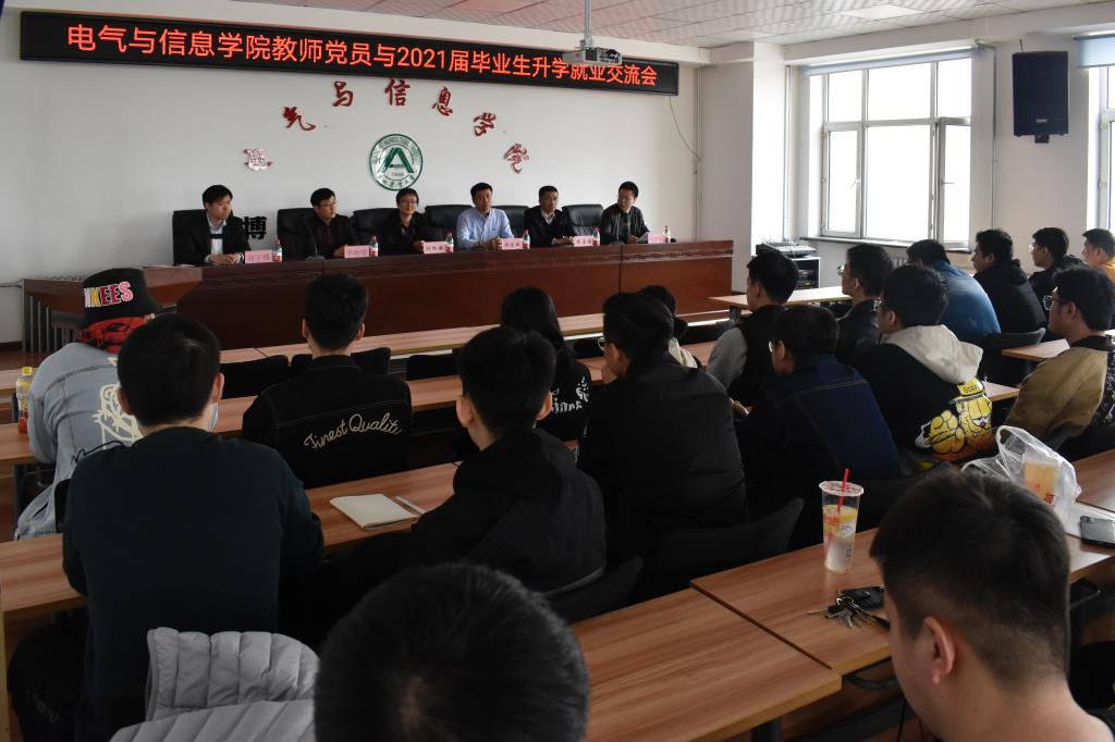 4月11日下午,我院教师党员汪文斌、孙红敏、张喜海、李晓明、刘宇博、刘贵辰召集了2021届部分在校的未就业及打算“二战”的学生,召开了升学、就业交流会。会议由毕业班辅导员刘贵辰主持。会上,老师们详细介绍了本次活动的初衷,他们鼓励全体同学在坚定升学或就业目标的基础上,能够审时度势,积极把握最后的升学调剂的机会,支持毕业生先就业再升学,鼓励未就业毕业生积极投身就业实践,努力实现高质量就业目标。