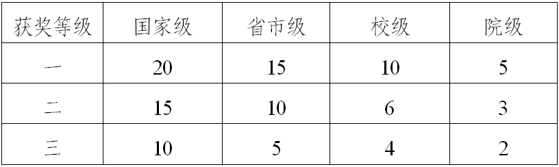 注:(1)评奖若以金银铜奖记,按一、二、三等奖加分;若有特等奖,可在一等奖分值基础上加5分;破记录者可在获奖名次分值的基础上加5分。